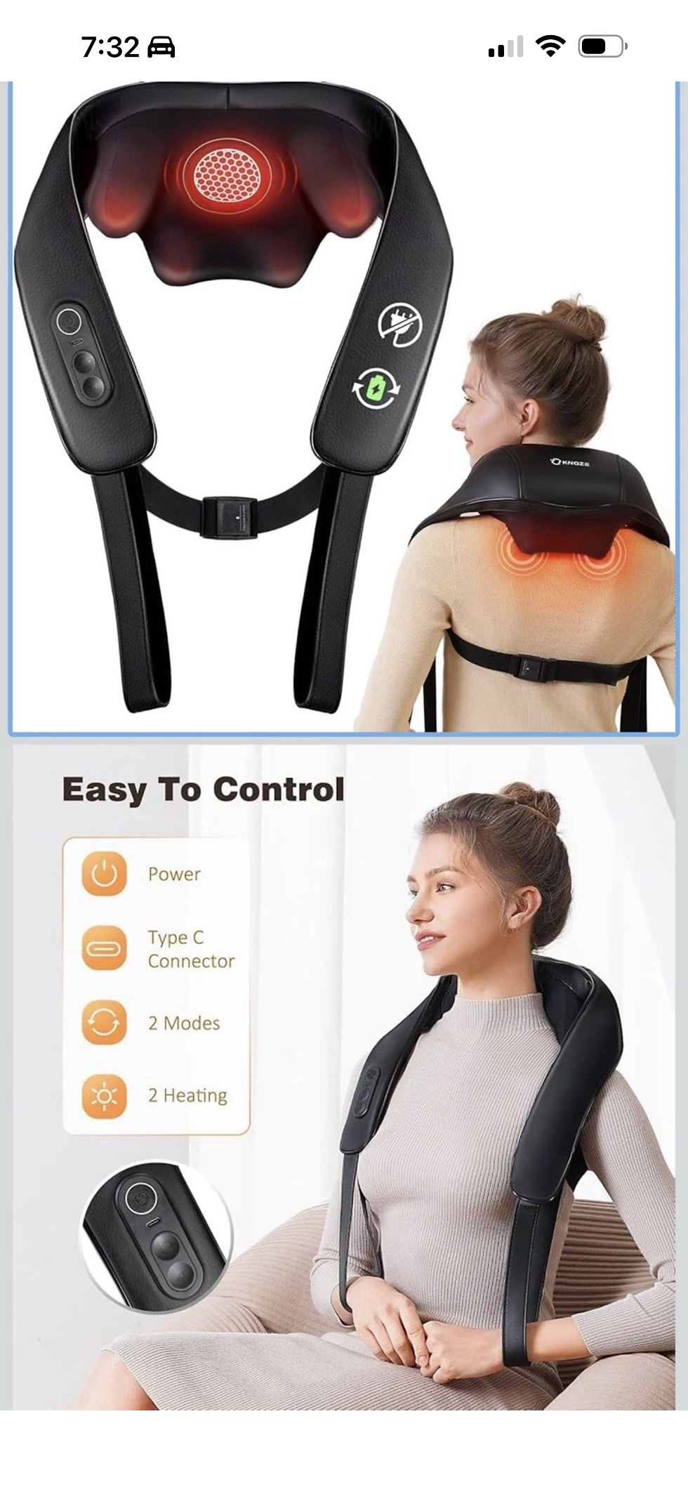 Cordless Shiatsu Back Neck Shoulder Massager Heat Deep Tissue 4D Knead Massage